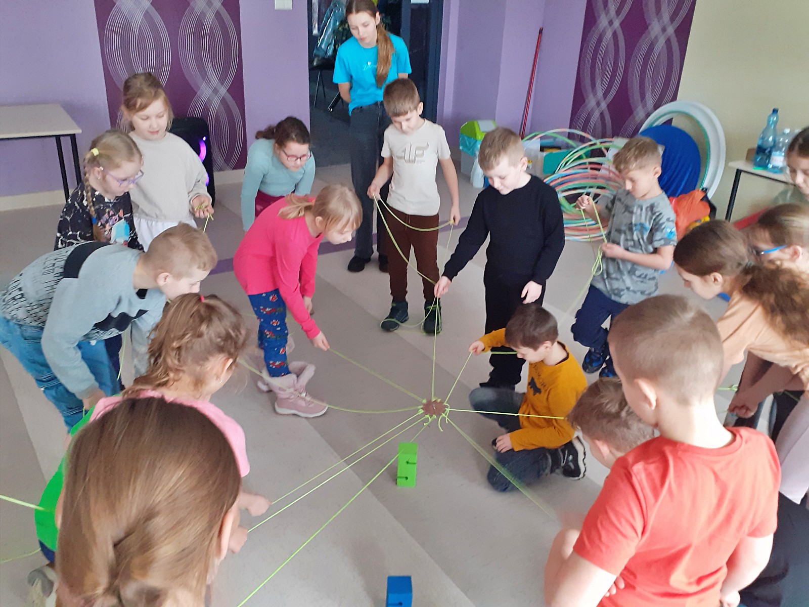 Na początek były zabawy z Judytą i Oliwią – animatorkami z firmy Dekorsal, które przygotowały zabawy i konkurencje sportowe. Było przeciąganie liny, układanie klocków, limbo, bańki oraz tworzenie slime’a. Drugiego dnia uczestnicy podzielili się na grupy, każda drużyna musiała wykonać matę do gry zręcznościowej. Dzieci przekonały się, że wspólna praca przynosi pozytywne efekty. Nie zabrakło też wyjazdu do kręgielni w Lnianie. Idealne miejsce, świetna zabawa i pyszny posiłek. Następny dzień upłynął pod znakiem kreatywnych warsztatów, których tematem przewodnim było serce -symbol miłości, przyjaźni. A na zakończenie pełnego wrażeń tygodnia była kolejna wycieczka. Tym razem dzieci wraz z opiekunami wyruszyli do kina „Wrzos” w Świeciu, gdzie obejrzeli film animowany pt. „Wielka mała koza”. Podsumowując, to był miło i pożytecznie spędzony czas, teraz czas na powrót do szkoły 😊.
