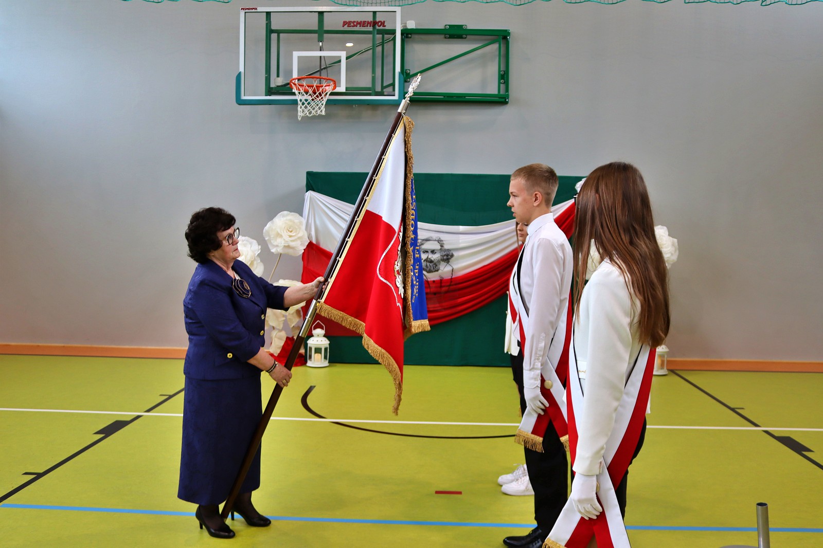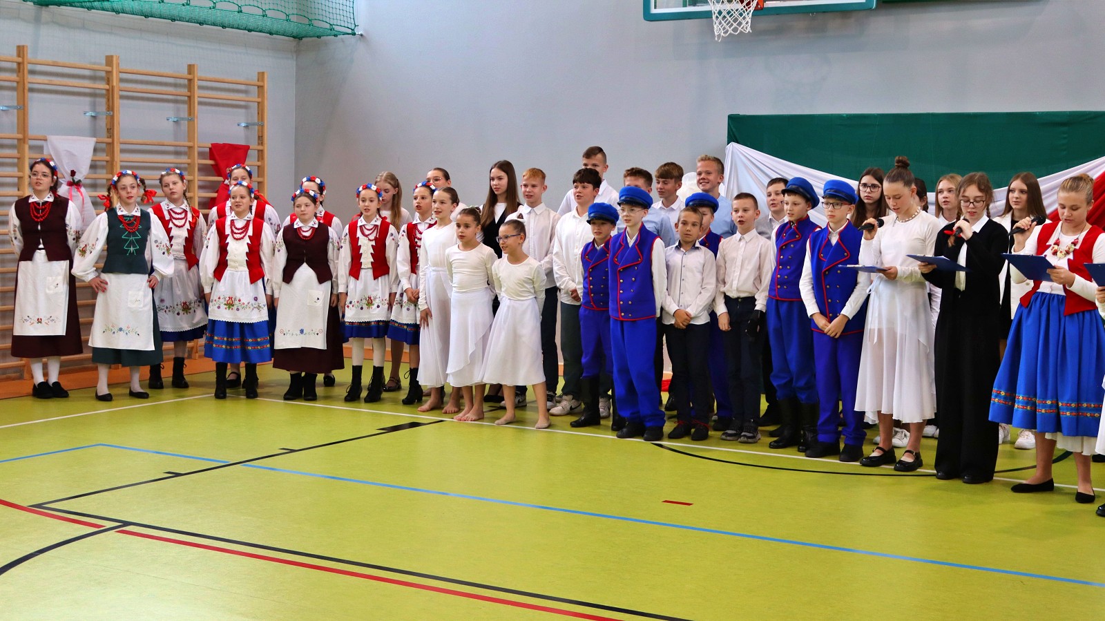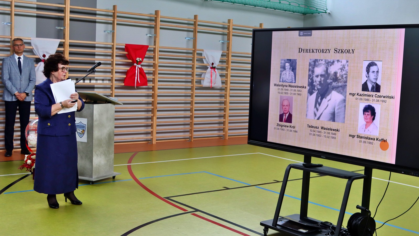 Na początek było poświęcenie nowego sztandaru, który został zakupiony przez Radę Rodziców szkoły. Po odśpiewaniu hymnu państwowego, gospodarz gminy wójt Adam Licznerski przekazał sztandar dyrektor szkoły Stanisławie Kuffel, po czym młodzież przystąpiła do uroczystej defilady pocztu sztandarowego. Kolejnym punktem programu było uroczyste ślubowanie uczniów. Następnie zgromadzeni mieli okazję obejrzeć prezentację o historii szkoły, w trakcie której dyrektor opowiadała o powstaniu placówki, przebiegła przez dziesięciolecia jej istnienia, aż do czasu rozbudowy szkoły i uzyskania zupełnie nowego oblicza. Zdjęcia i filmy zostały uzupełnione zabawnymi anegdotami z życia szkoły. W momencie, gdy na kartach prezentacji pojawiły się lata dziewięćdziesiąte na salę wbiegły rozgadane „baby kociewskie”. Krótki występ mam uczniów i cięte riposty rozbawiły zgromadzoną publiczność. Zaprezentowane wspomnienia wzbudziły wiele emocji, u niektórych pojawiły się łzy wzruszenia i radości. Szkoła zmieniła się niesamowicie.