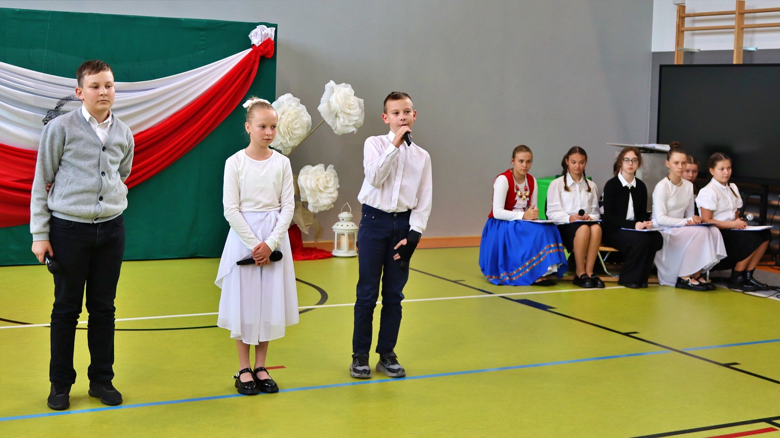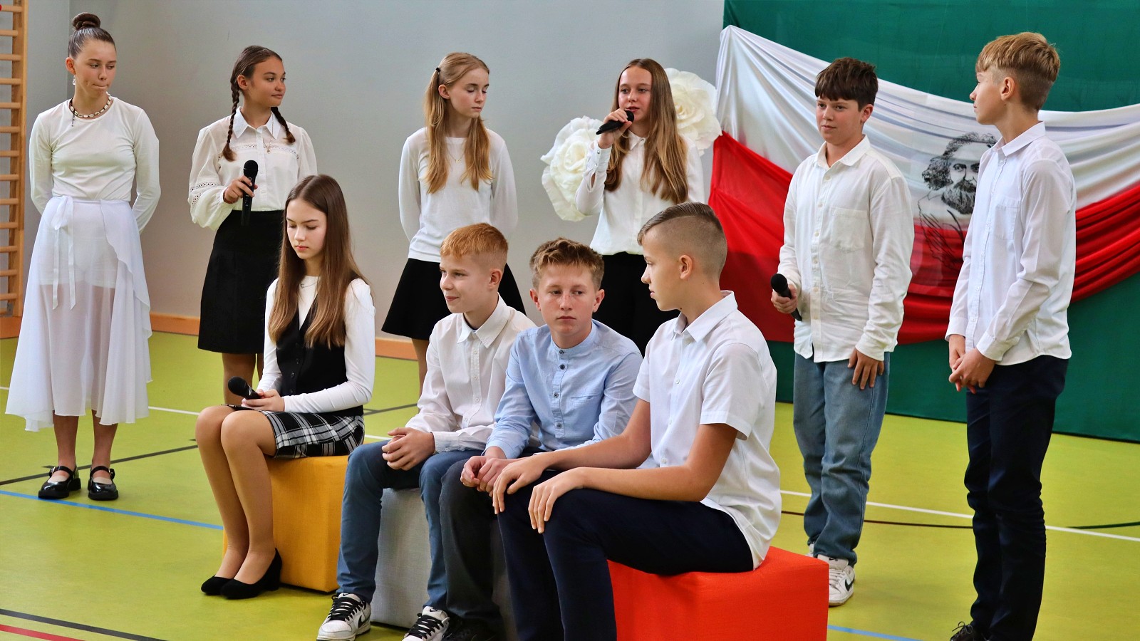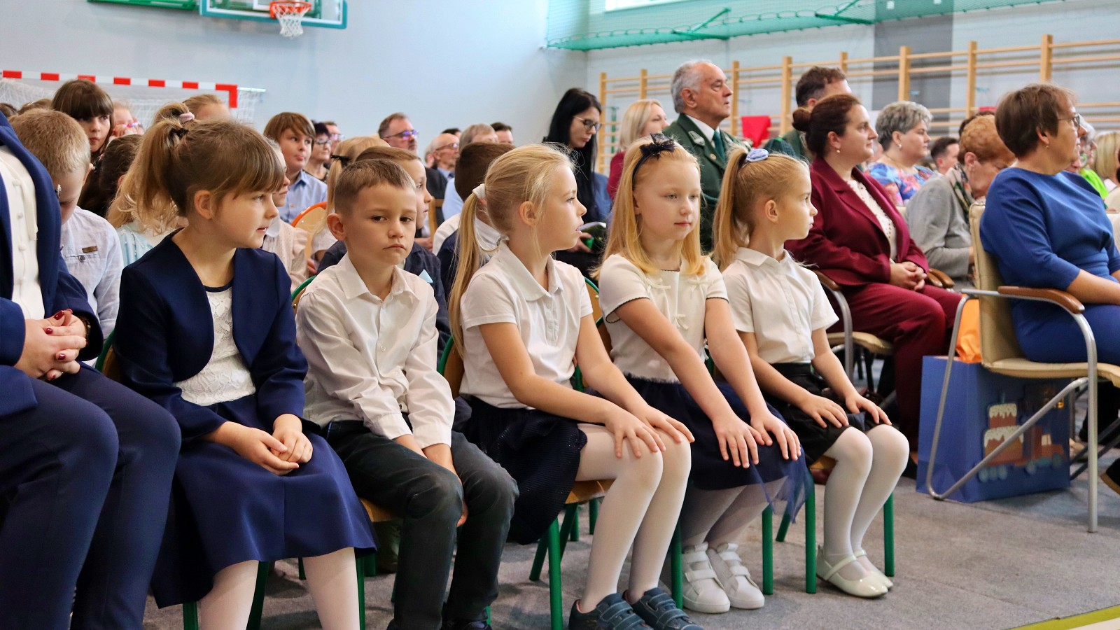Na początek było poświęcenie nowego sztandaru, który został zakupiony przez Radę Rodziców szkoły. Po odśpiewaniu hymnu państwowego, gospodarz gminy wójt Adam Licznerski przekazał sztandar dyrektor szkoły Stanisławie Kuffel, po czym młodzież przystąpiła do uroczystej defilady pocztu sztandarowego. Kolejnym punktem programu było uroczyste ślubowanie uczniów. Następnie zgromadzeni mieli okazję obejrzeć prezentację o historii szkoły, w trakcie której dyrektor opowiadała o powstaniu placówki, przebiegła przez dziesięciolecia jej istnienia, aż do czasu rozbudowy szkoły i uzyskania zupełnie nowego oblicza. Zdjęcia i filmy zostały uzupełnione zabawnymi anegdotami z życia szkoły. W momencie, gdy na kartach prezentacji pojawiły się lata dziewięćdziesiąte na salę wbiegły rozgadane „baby kociewskie”. Krótki występ mam uczniów i cięte riposty rozbawiły zgromadzoną publiczność. Zaprezentowane wspomnienia wzbudziły wiele emocji, u niektórych pojawiły się łzy wzruszenia i radości. Szkoła zmieniła się niesamowicie.