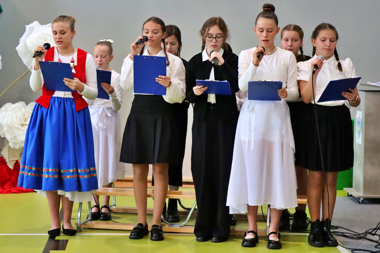 Potem przyszedł moment, aby zgromadzeni goście mogli zabrać głos. Padło wiele miłych słów, pełnych zachwytu i wdzięczności. Kolejnym punktem programu były występy artystyczne uczniów szkoły. Program nawiązywał do historii oraz jubileuszu. Artyści pokazali, że sprawnie posługują się gwarą, a także poprawną polszczyzną. Swoje umiejętności wokalne zaprezentował chór pod przewodnictwem Andrzeja Gładkowskiego. W nawiązaniu do tradycji i kociewskich korzeni, uczniowie zatańczyli taniec regionalny nazywany „koszykarzem”. Dziewczynki wchodzące w skład zespołu Mariusza Mingi pokazały swoje umiejętności taneczne i akrobatyczne.